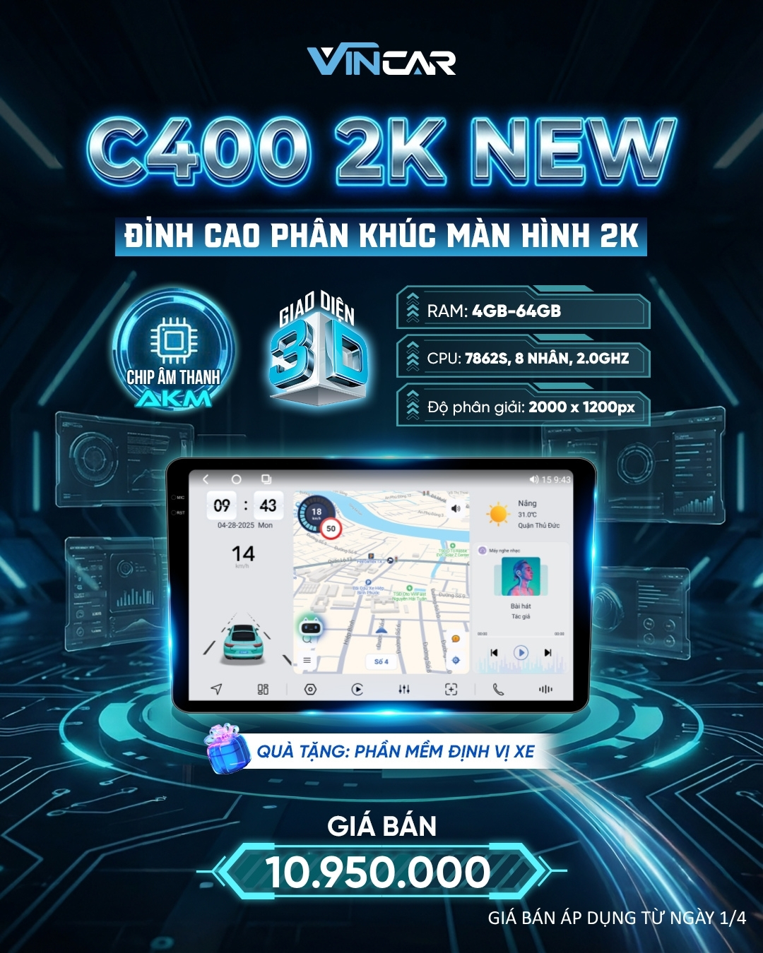 Màn hình Android C400 2K là lựa chọn phù hợp cho những ai muốn nâng cấp xe theo hướng hiện đại, tiện nghi nhưng vẫn tối ưu chi phí. Với sự kết hợp giữa hiển thị sắc nét, âm thanh chất lượng và các tính năng hỗ trợ thực tế, sản phẩm mang lại trải nghiệm đủ tốt cho nhu cầu sử dụng hằng ngày.