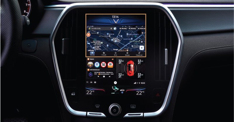 Màn hình xe Vinfast với ứng dụng chỉ đường cơ bản