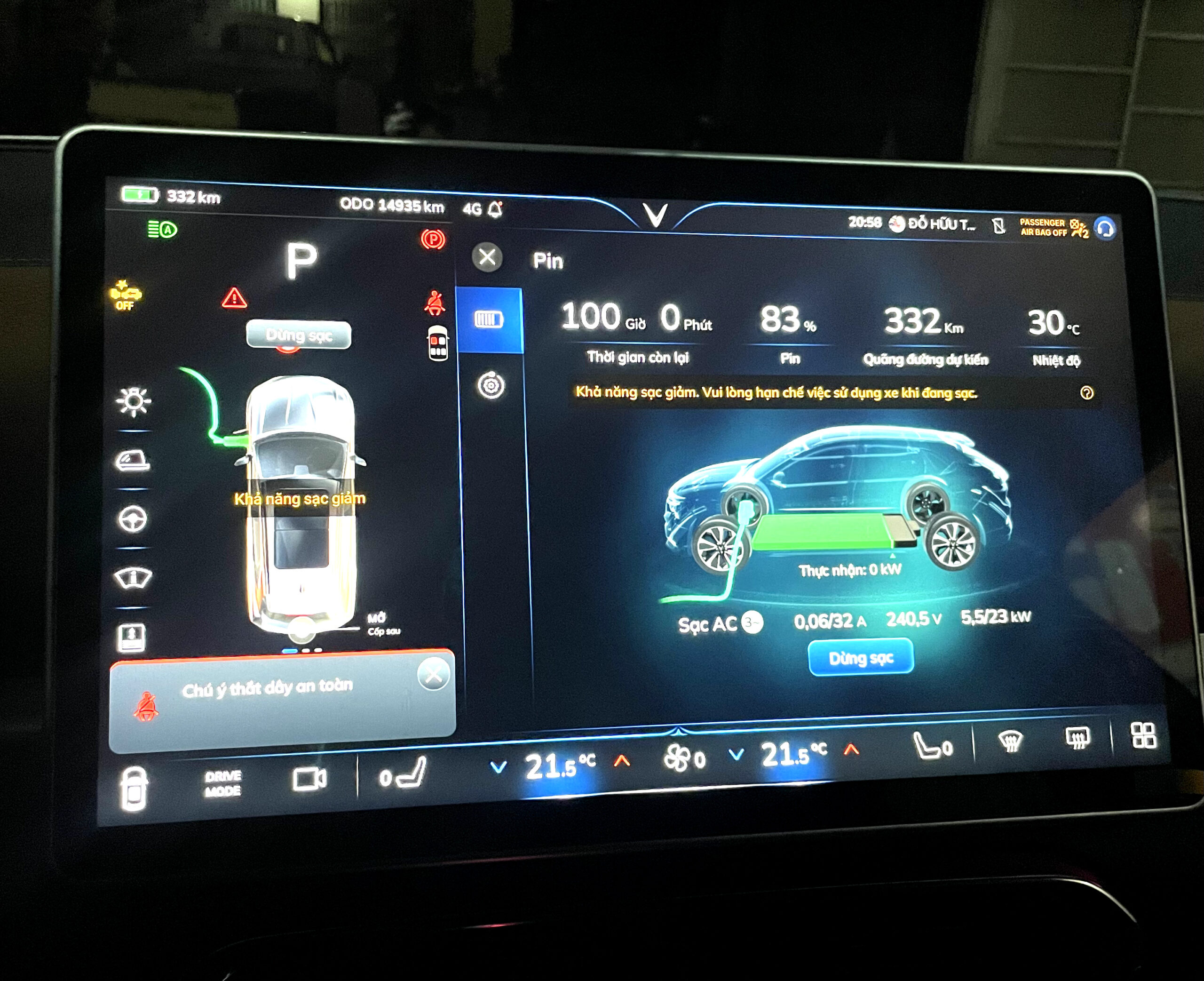 - Có màn hình trung tâm lớn + hệ điều hành riêng của VinFast